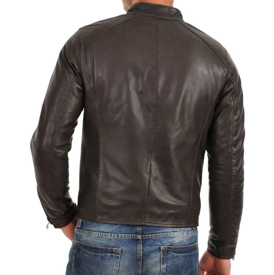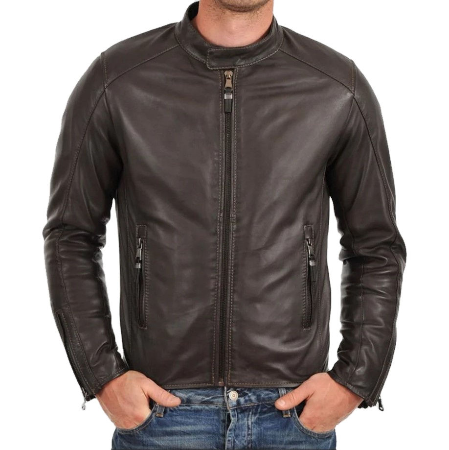 แจ็คเก็ตหนังแท้สั่งทำพิเศษ คอตั้ง แบบกลับด้านได้ สำหรับฤดูหนาว สไตล์ไฮสตรีท แจ็คเก็ตผู้ชาย โลโก้ด้านหน้า สไตล์มอเตอร์ไซค์และไบค์เกอร์