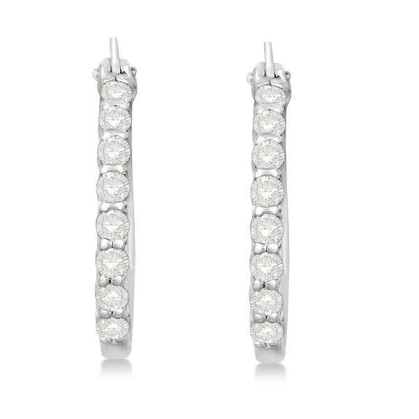 ต่างหูเพชรแท้ทรงห่วง 0.50 กะรัต ประดับเพชรแบบ Pave ในทองคำขาว 14k