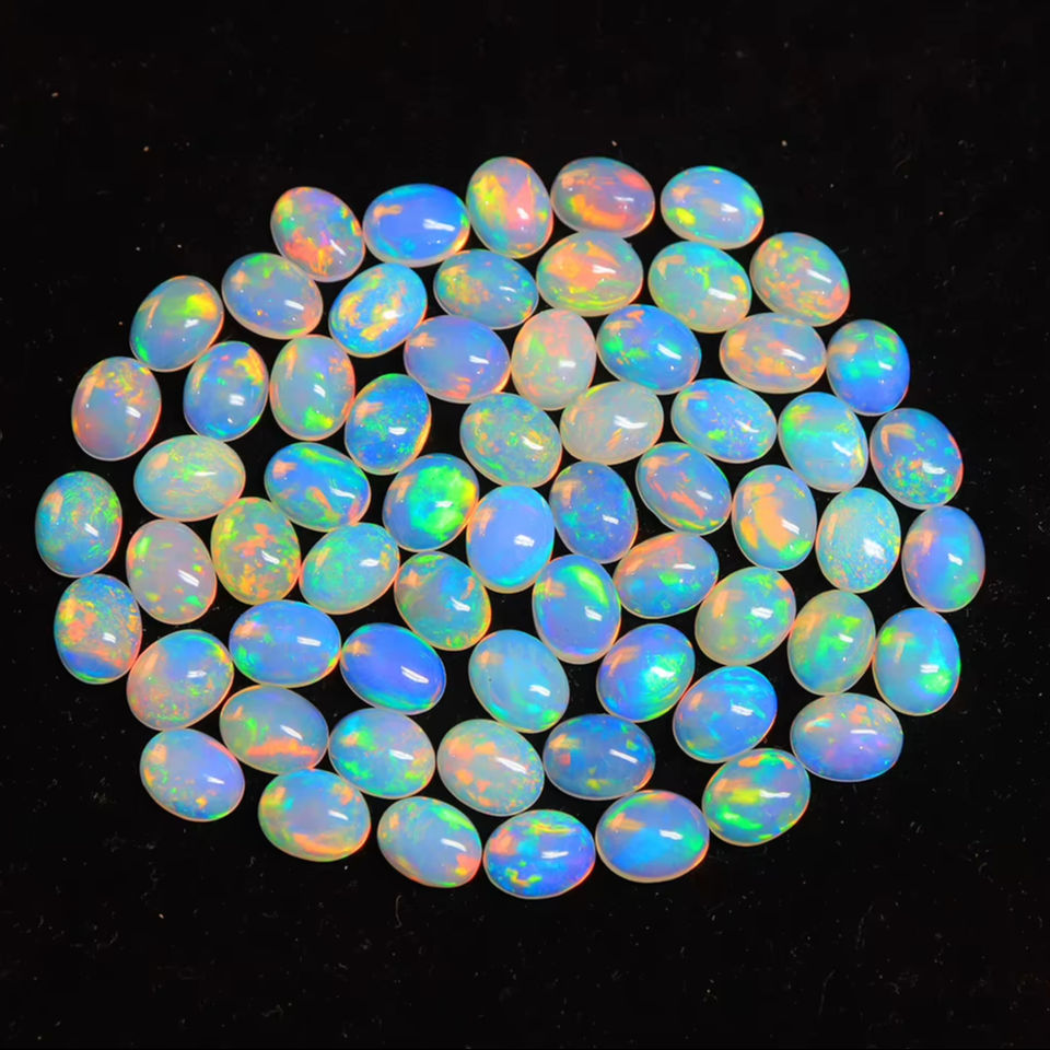 โอปอลเอธิโอเปียแท้ ขนาด 7x5 มม. รูปทรงวงรี โอปอลเวโล ประกายรุ้งสวยงาม