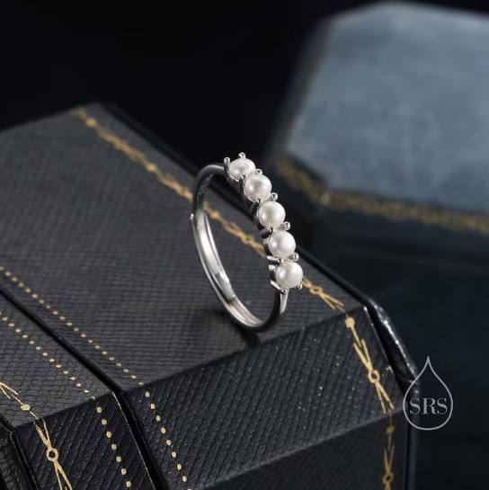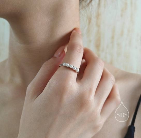 แหวนมุกน้ำจืดแท้ทรงอินฟินิตี้เงินแท้ แหวนมุกเม็ดกลม แหวนมุกแท้ทรงนิรันดร์ ปรับขนาดได้