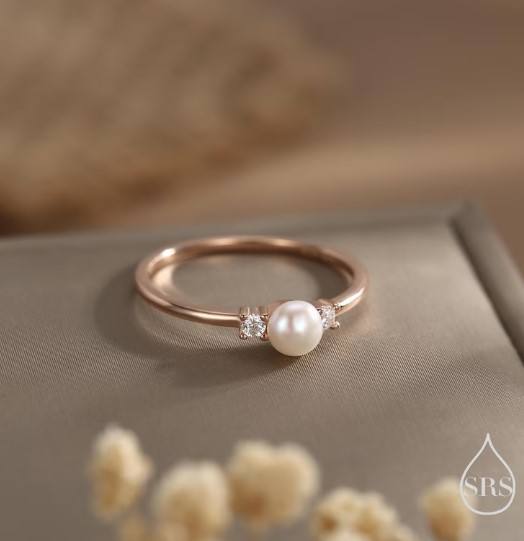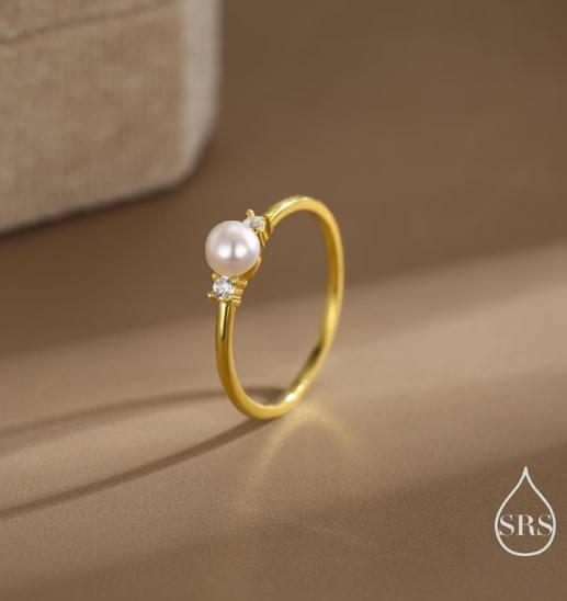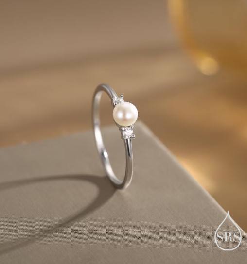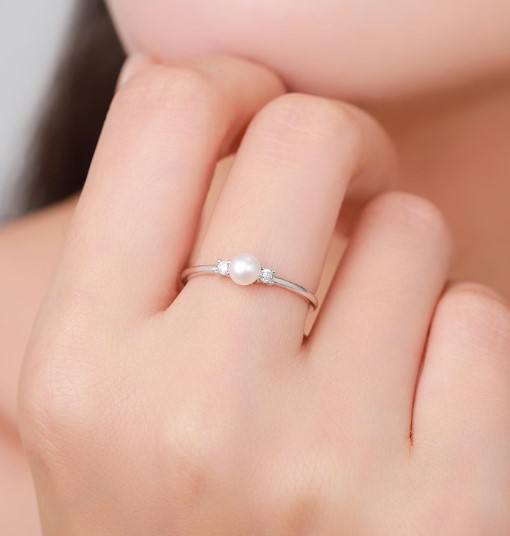 แหวนมุกน้ำจืดแท้และเพชร CZ บนตัวเรือนเงินแท้ แหวนมุกธรรมชาติ แหวนมุกแท้