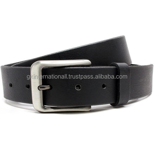 เข็มขัดลำลองหนังแท้แบบเม็ดสีดำแท้สำหรับทุกเพศพร้อมหัวเข็มขัดฟรีนิกเกิลสั่งทำได้