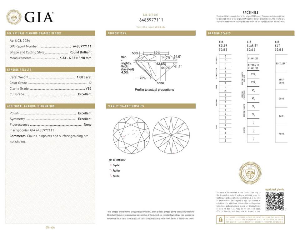 ของแท้ GIA ได้รับการรับรอง 1.00 กะรัตธรรมชาติ D สี VS2 ความชัดเจนรอบ Brilliant Cut หลวม Solitaire เพชรสําหรับเครื่องประดับทําใช้