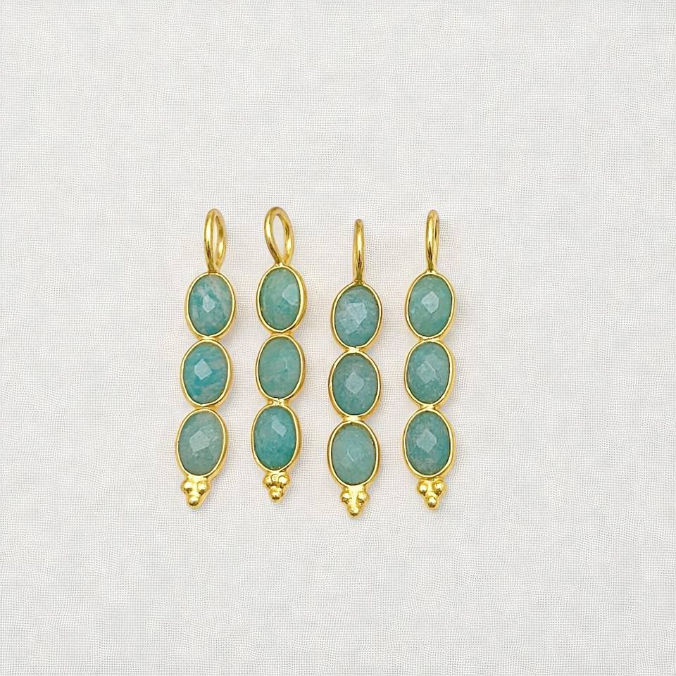ชื่อ:จี้หินอัญมณี3ชิ้นขนาด6x4มม. จี้รูปวงรี925เงินประดับกระเปาะ