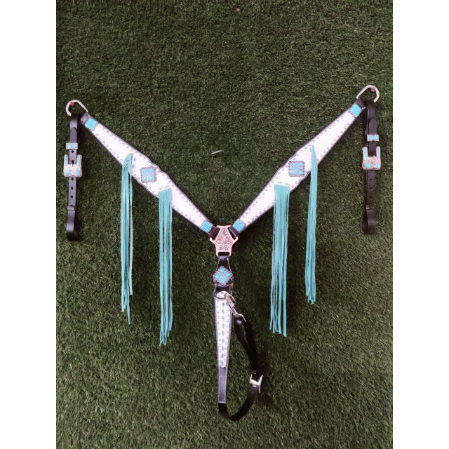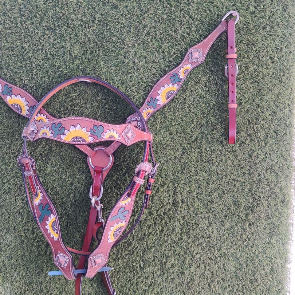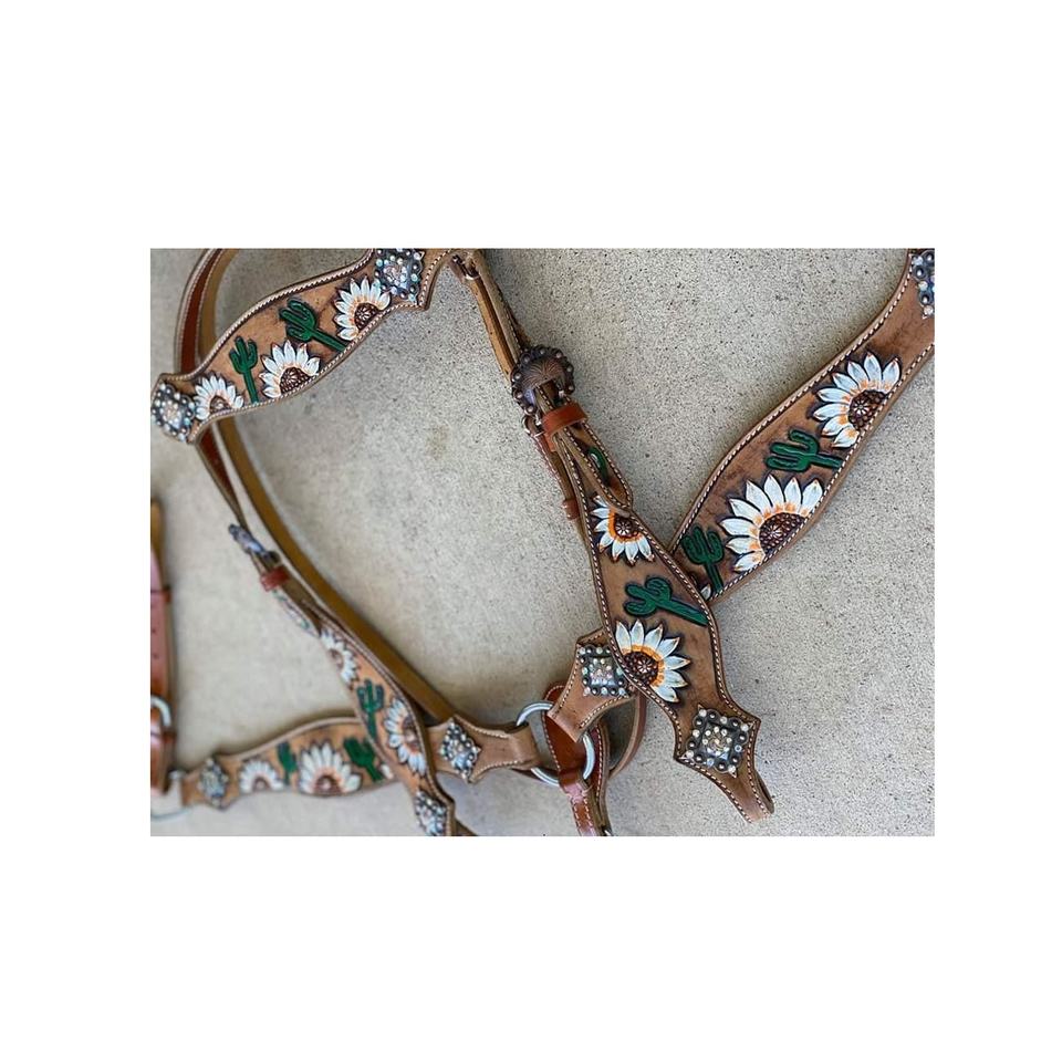 สายรัดอกม้าแบบตะวันตกพร้อมหัวเข็มขัดทองเหลือง-สแตนเลส พร้อมด้วยสายรัดศีรษะหนังแท้แบบตะวันตกที่ออกแบบเองได้ในราคาต่ำสุด