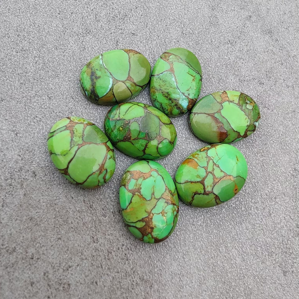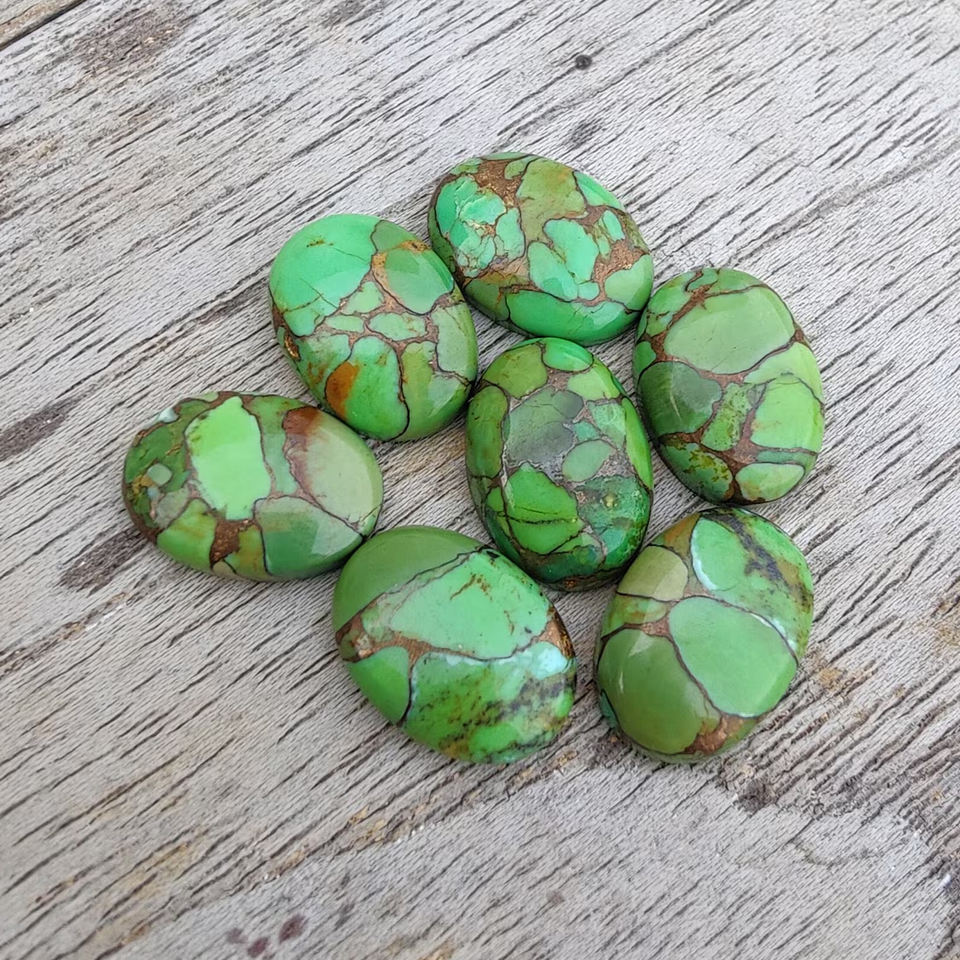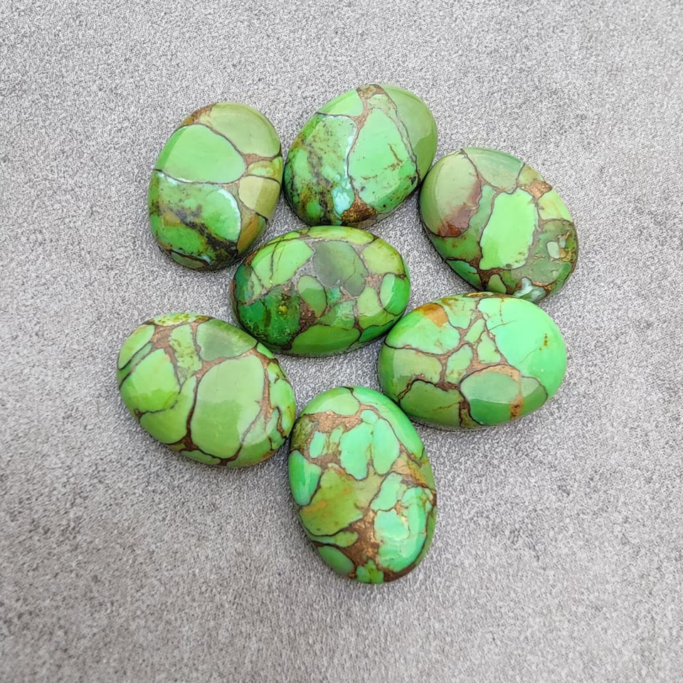 พลอยเทอร์ควอยซ์สีเขียวทองแดงแท้ รูปไข่ ขนาดมาตรฐาน เกรด AAA+ แบบคาโบชอง สำหรับทำเครื่องประดับ
