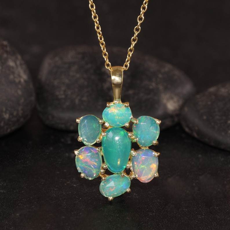 จี้สร้อยคอพลอยโอปอลสีเขียวแท้ ทรงเหลี่ยมเจียระไนด้วยไฟ ทำด้วยมือ ของขวัญประจำเดือนเกิดสำหรับเธอ