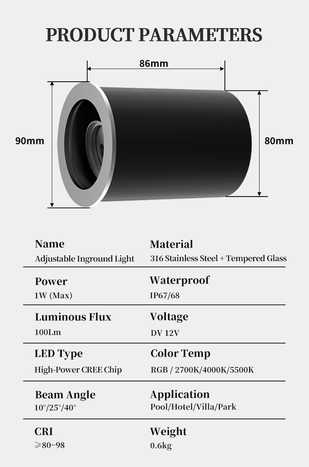 ไฟใต้ดินแท้ INGROUND-90 สำหรับรถยนต์ กันน้ำ IP67 5500K เหมาะสำหรับโรงแรม พลาซ่า ถนน ขั้นต่ำในการสั่งซื้อน้อย ออกแบบได้ตามความต้องการ
