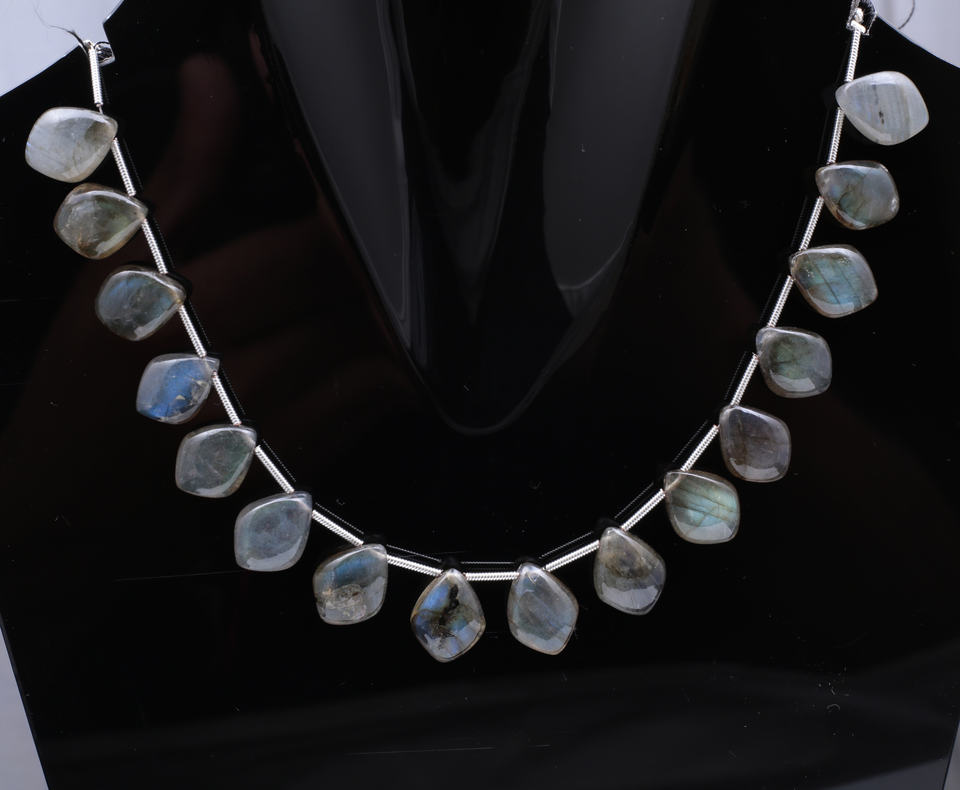 ลูกปัดลาบราดอไรต์สีรุ้งแท้เส้นอัญมณีธรรมชาติขัดเงาแบบหลวมสำหรับทำเครื่องประดับสร้อยคอสร้อยข้อมือ