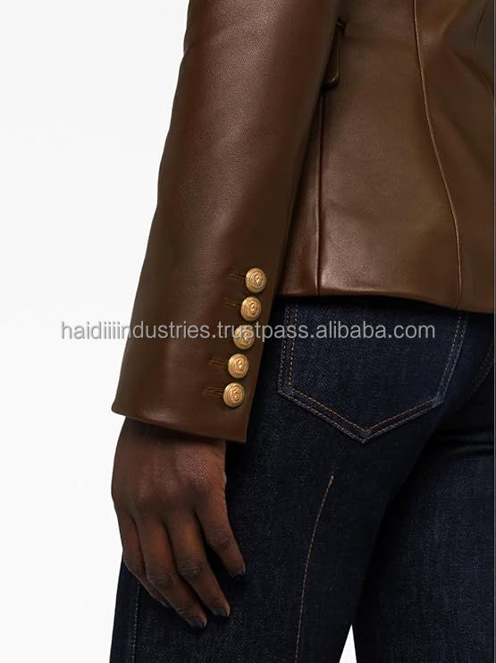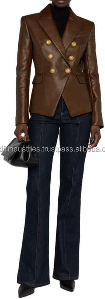 Genuine Lambskin Leather Single Button Blazer for Women Black with Full Sleeves Solid Pattern Office Wear Suit Style Men's Suits