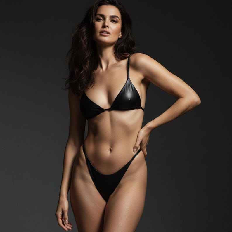 ชุดบราสายไขว้หลังหนังแท้และกางเกงเอวสูง | เครื่องหนังทำมือสำหรับผู้หญิงสีดำ