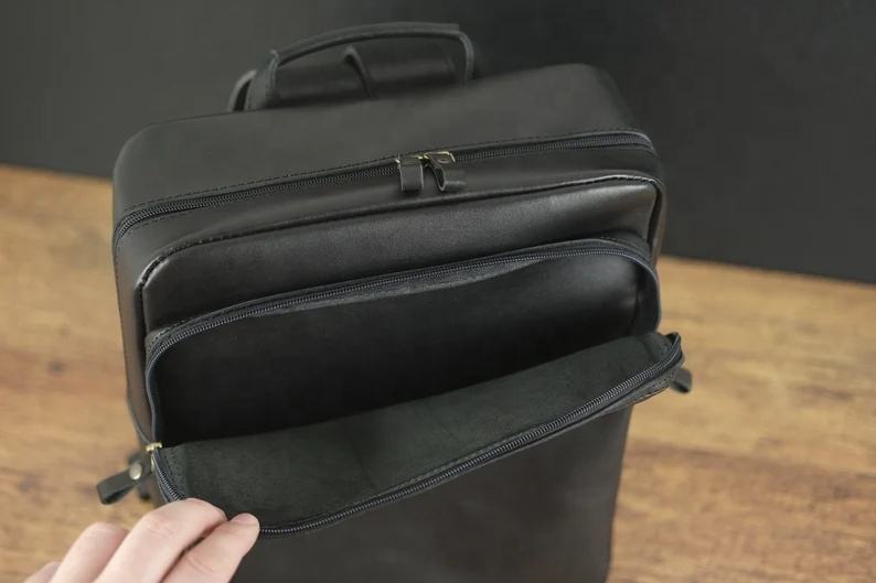 กระเป๋าเป้หนังแท้สไตล์เรโทรสำหรับเดินป่า กระเป๋าหนังแบบยูนิเซ็กซ์ พร้อมช่องเก็บแล็ปท็อป แท็บเล็ต และโทรศัพท์ กระเป๋าเป้แบบสั่งทำพิเศษ