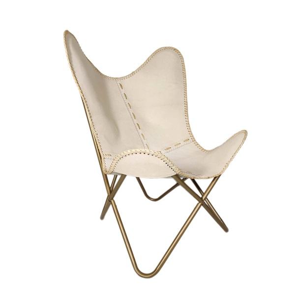 เก้าอี้หนังแท้ทรงผีเสื้อพร้อมโครงโลหะแข็งแรงและดีไซน์ตามหลักสรีรศาสตร์เพื่อความสบาย เหมาะสำหรับห้องนั่งเล่นและตกแต่งบ้านสไตล์โมเดิร์น