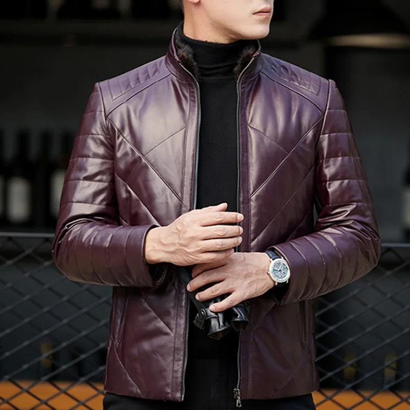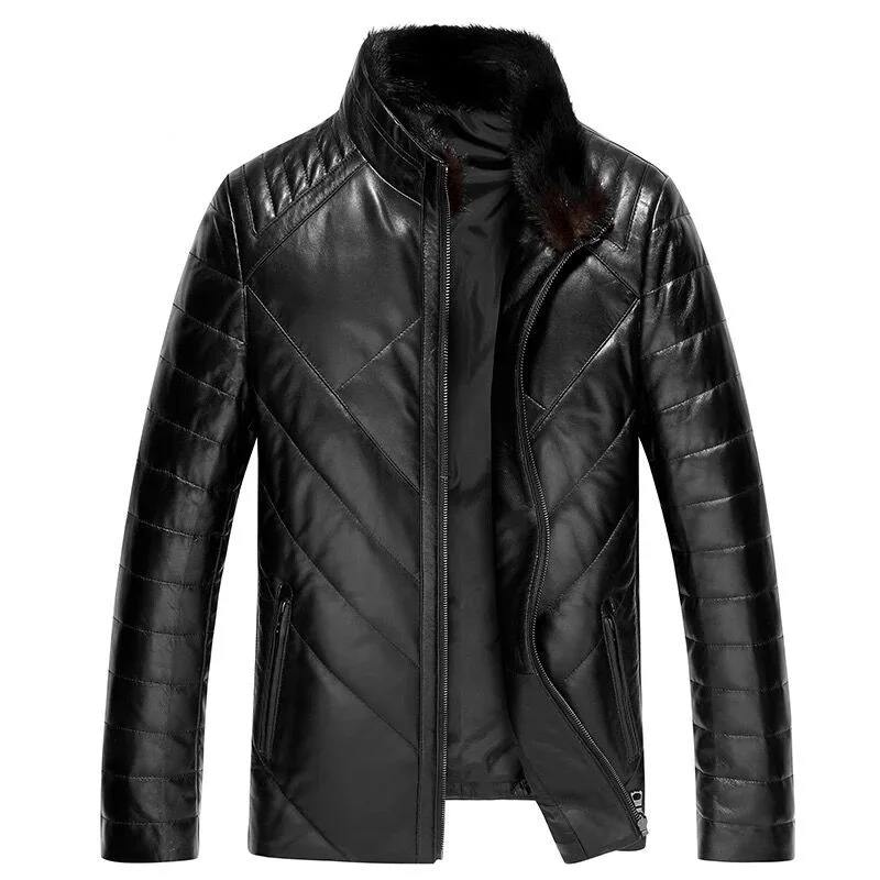 แจ็กเก็ตผ้าใบหนังแท้สำหรับผู้ชาย, เสื้อโค้ทแฟชั่นสไตล์เกาหลีแนวสตรีทให้ความอบอุ่นในฤดูหนาว