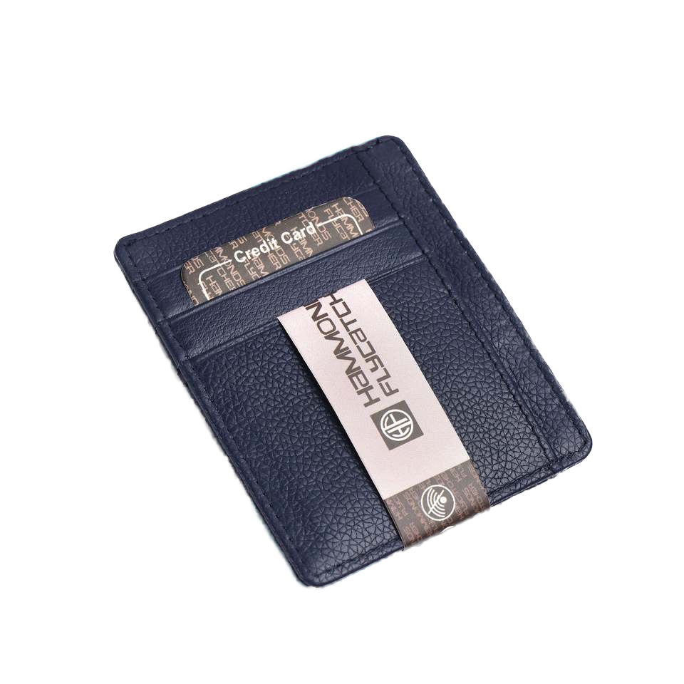 ที่ใส่บัตรดีไซน์เพรียวบางสำหรับผู้ชาย/ผู้หญิงสีน้ำเงินหนังแท้ป้องกันด้วย RFID บัตรเครดิตสไตล์มินิมอล