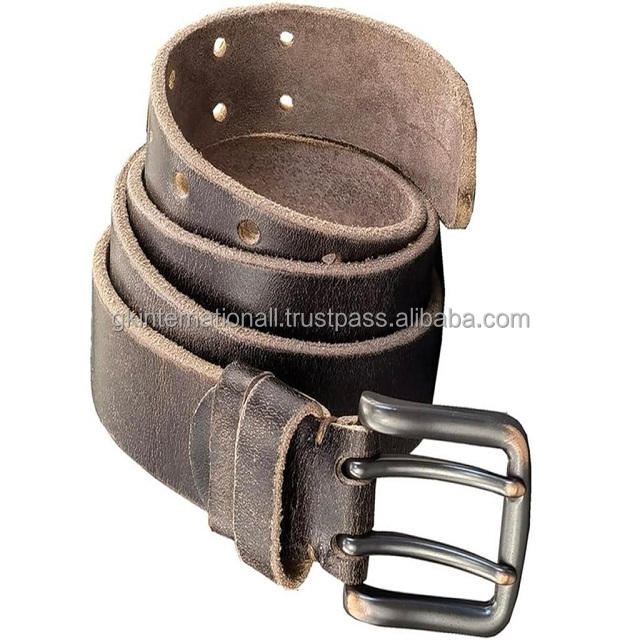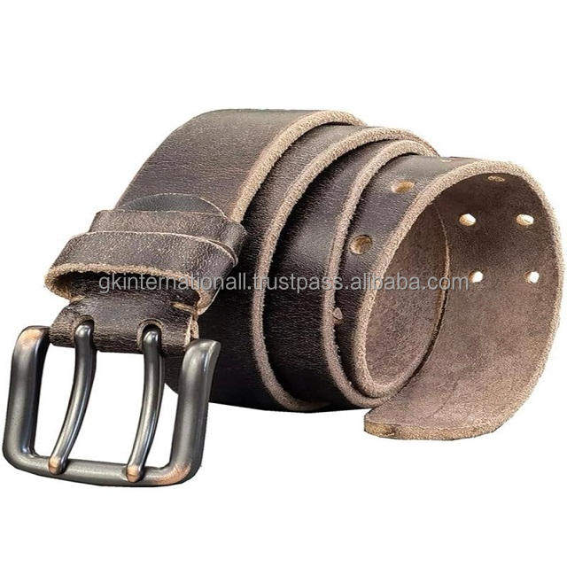 หนังวัวแท้ เข็มขัดชุดลําลองสําหรับ unisex พร้อมหัวเข็มขัดทองเหลืองโบราณสองง่ามสําหรับงานหนัก OEM และการสั่งซื้อจํานวนมากได้รับการยอมรับ