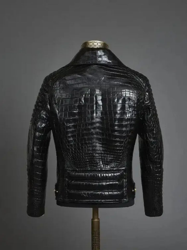 แจ็กเก็ตกันลมหนังจระเข้แท้สำหรับผู้ชายเสื้อลำลองแนวสตรีทหนัง PU