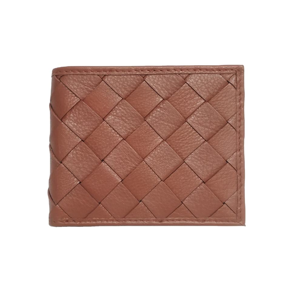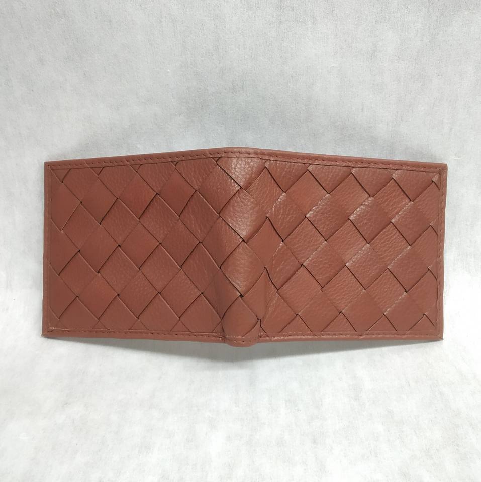 กระเป๋าสตางค์หนังแท้สำหรับผู้ชาย ดีไซน์เนอร์ ป้องกัน RFID ใส่บัตรได้ บางเฉียบ สกรีนโลโก้ได้ ลายถักแบบเรียบง่าย พับได้สองตอน