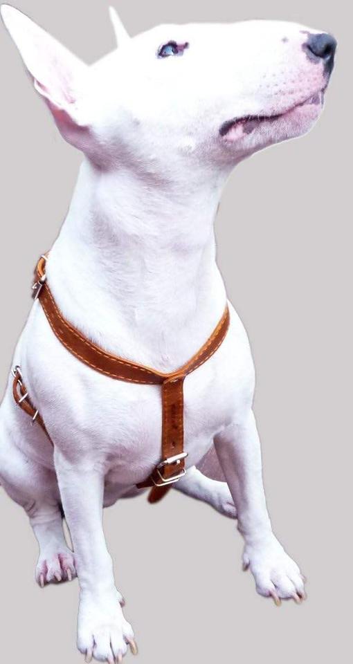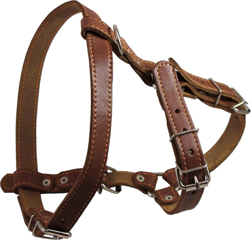 สายรัดสุนัขหนังแท้ไม่มีสายรัดสำหรับฝึกสุนัขสัตว์เลี้ยงเดินปรับได้ง่าย