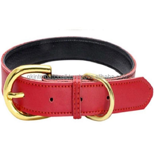 ปลอกคอสุนัขบุนวมหนาสองชั้นหนังแท้ทุกสีและขนาดที่กำหนดเองพร้อมหัวเข็มขัดโลหะชุบทองเหลืองแบบปรับได้
