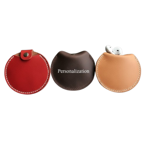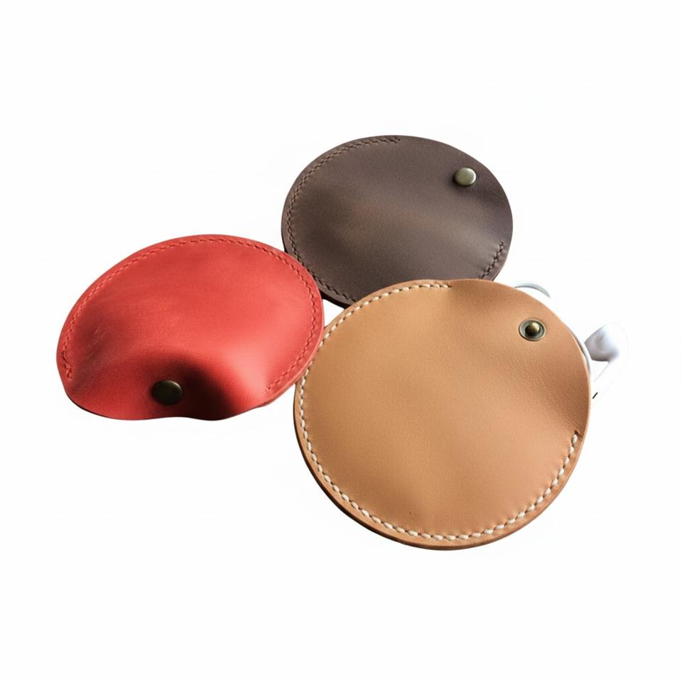 ซองใส่หูฟังหนังแท้ พร้อมช่องเก็บสาย หูฟังแบบกลม พกพาสะดวก มีกระดุมแป๊ก รับสกรีนโลโก้ ทำด้วยมือ