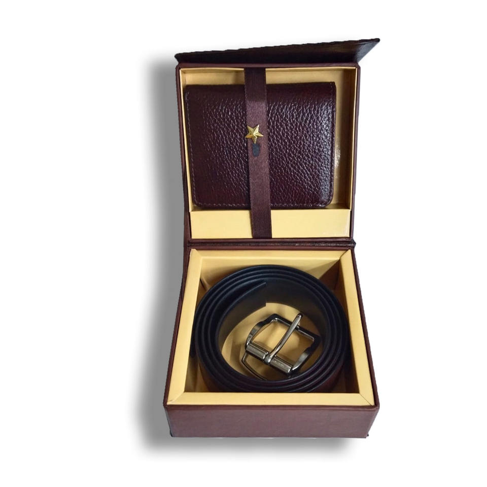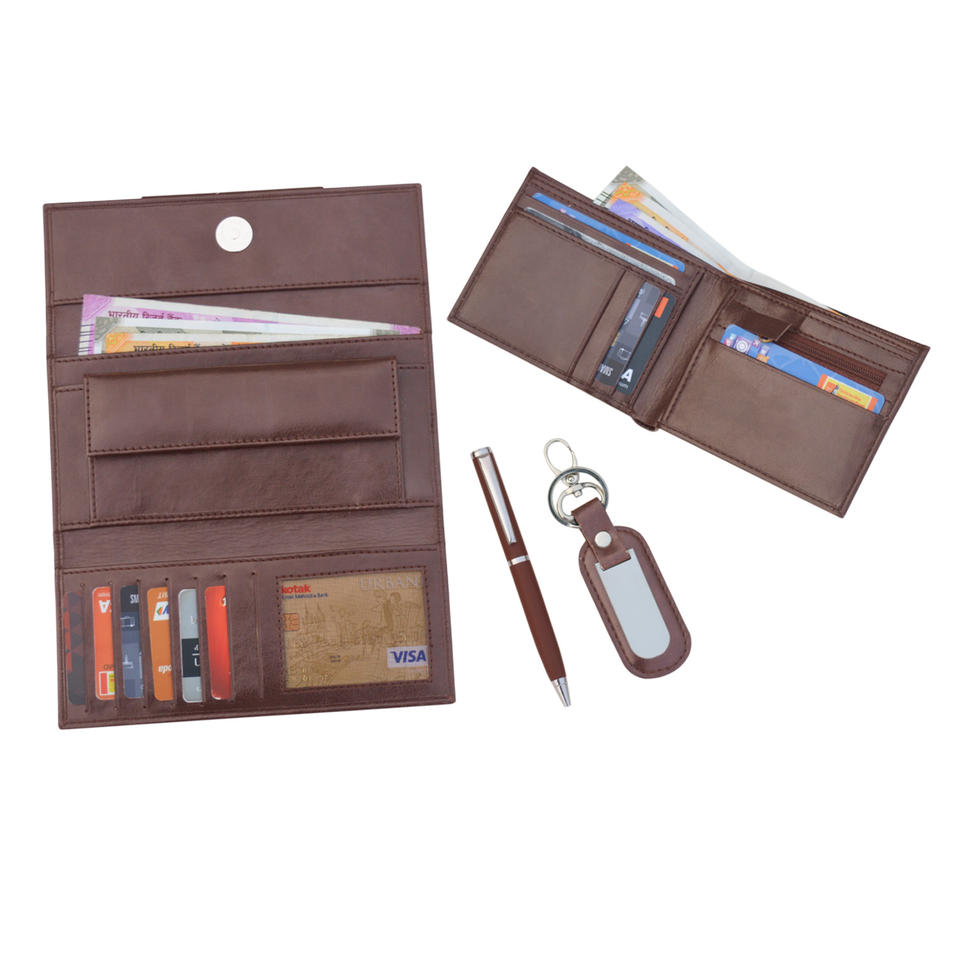 กระเป๋าสตางค์หนังแท้ทุกเพศชุดเข็มขัดผสม RFID เป็นมิตรกับสิ่งแวดล้อมเป็นที่ต้องการมากที่สุดของขวัญส่งเสริมการขายทางธุรกิจ
