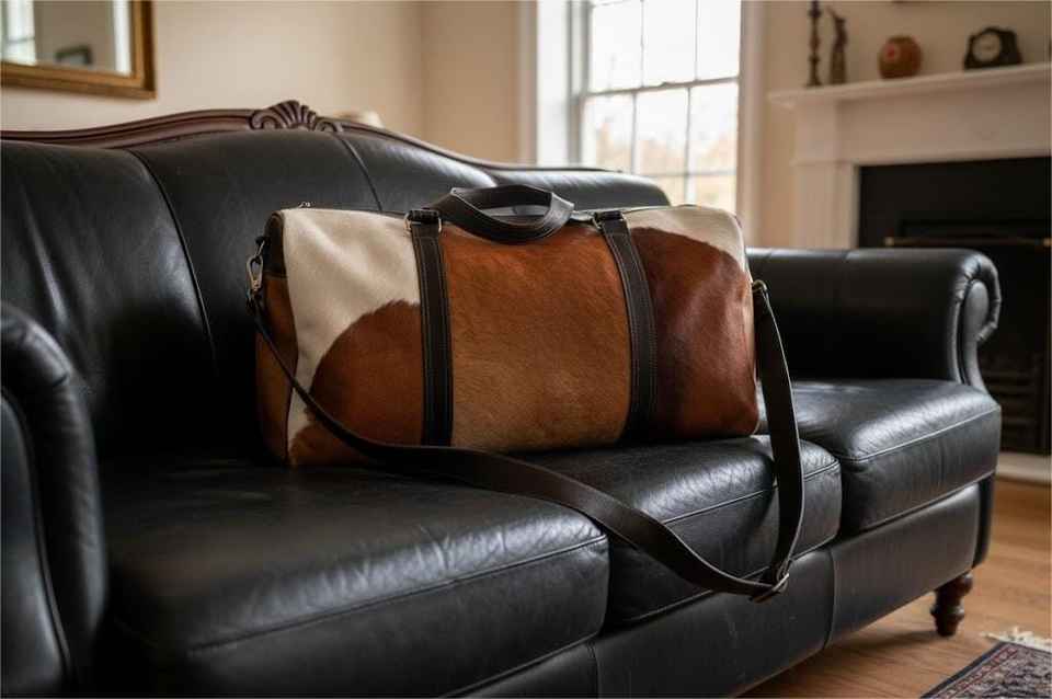 Genuine Leather Hair On Duffle Bag