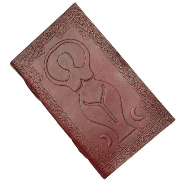 สมุดโน้ตปกแข็งหนังแท้พร้อมลายนูนเซลติกเทพธิดางานแฮนด์เมดสำหรับร่างของขวัญที่ปรับแต่งได้