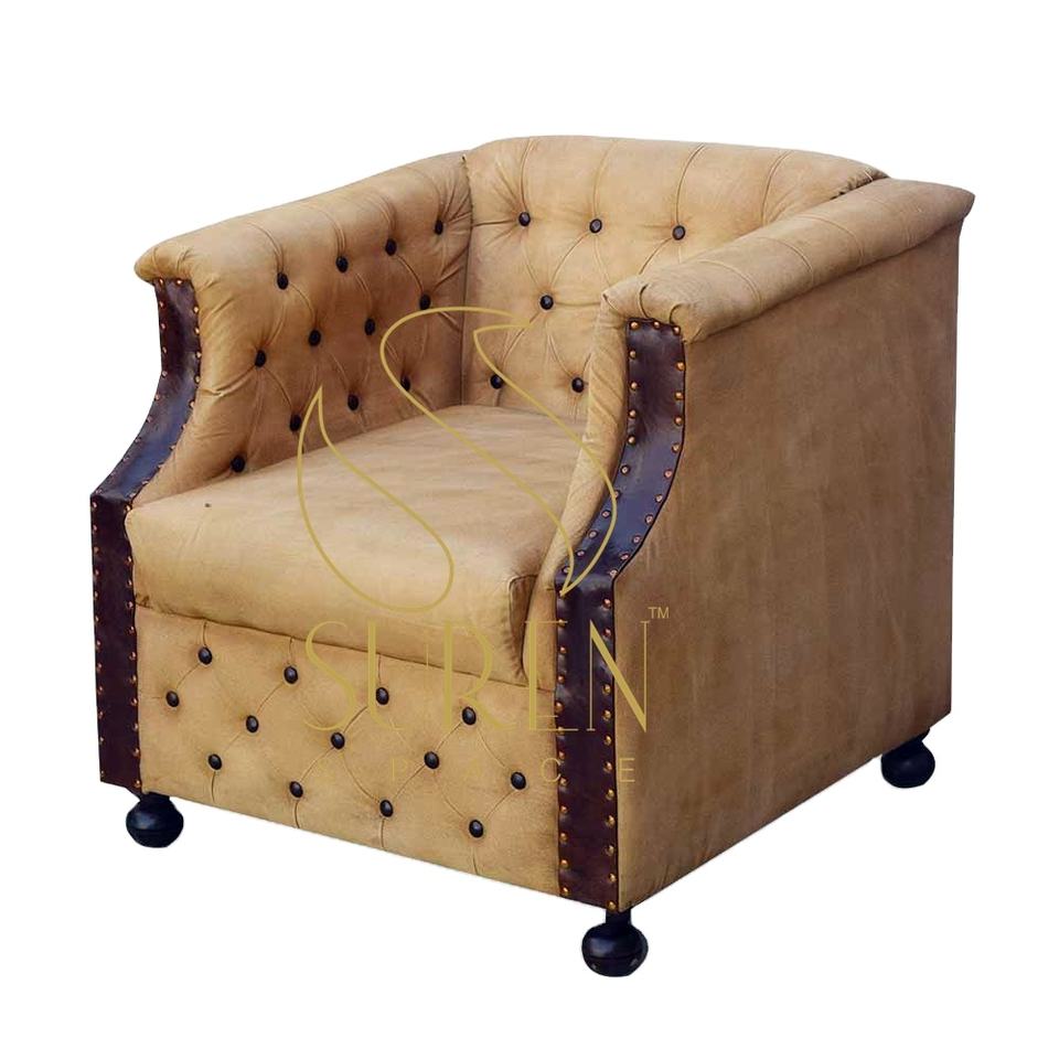 โซฟาหนังแท้ทรงอุตสาหกรรม ดีไซน์เนอร์ ออกแบบ โซฟาเป่าลมแบบนั่งเดี่ยว ทำด้วยมือ