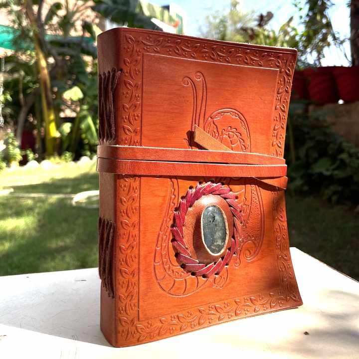 สมุดบันทึกหนังแท้พร้อมการแกะสลักด้วยมือลายมังกรและสมุดสเก็ตช์พลอยแบบเติมได้สมุดบันทึกการเดินทางแบบกำหนดเอง
