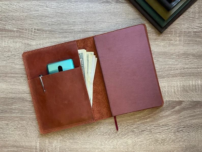 สมุดบันทึกหนังแท้ทำด้วยมือปลอกหนังวัวนิ่มใส่โน๊ตบุ๊คท่องเที่ยวผจญภัย