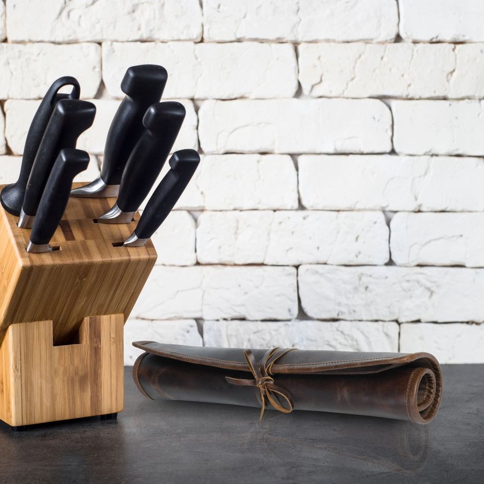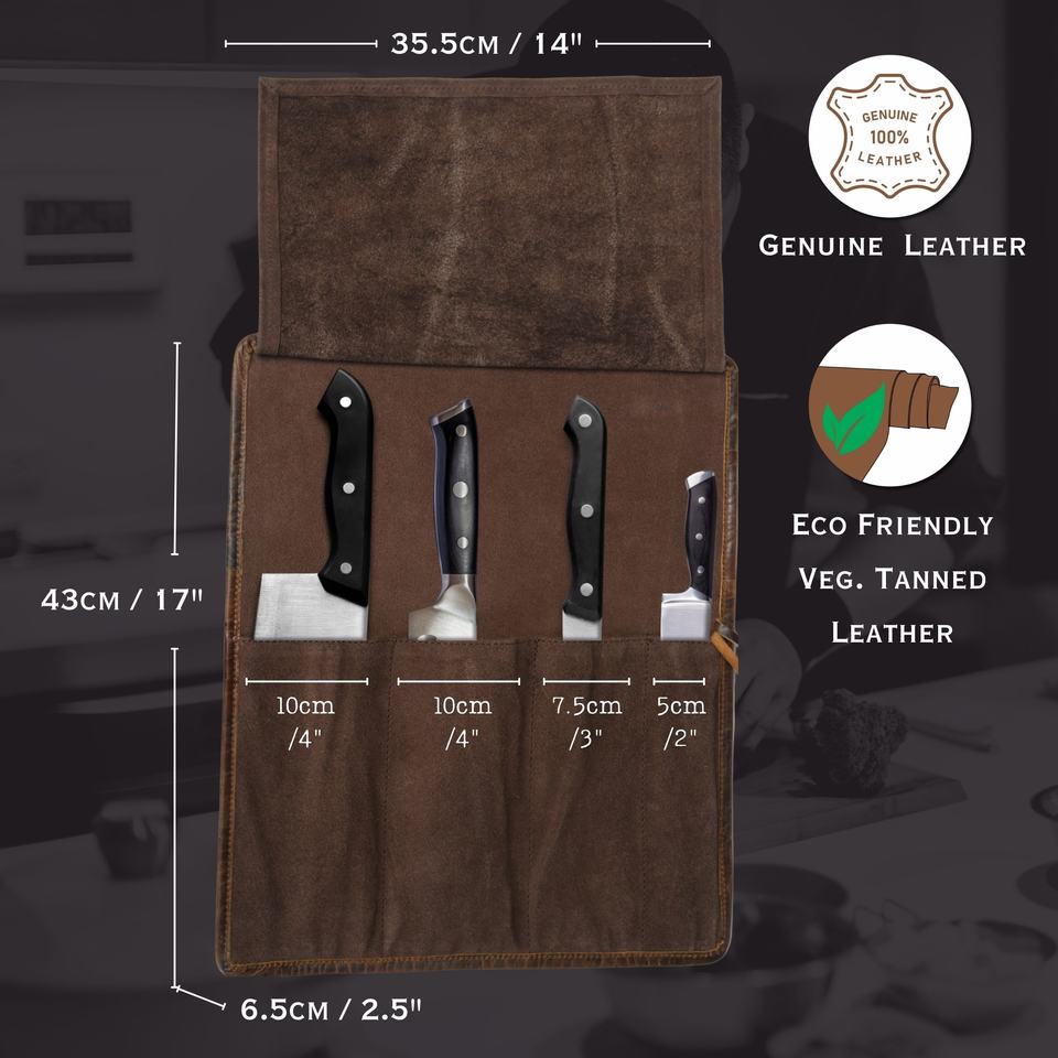 ม้วนมีดทำครัวหนังแท้ที่คลุมมีดเชฟหนังกลับพกพาง่าย