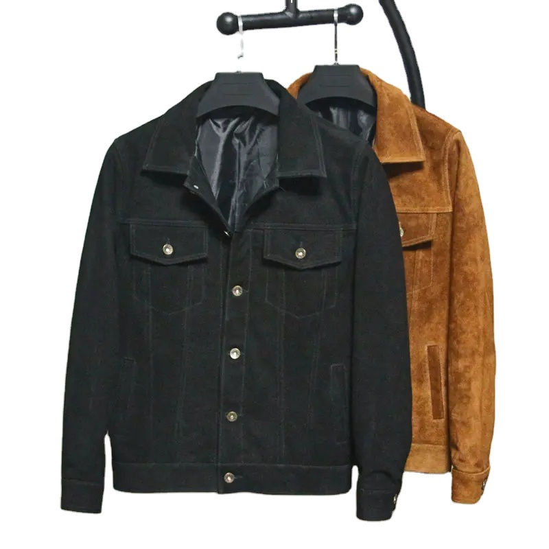 เสื้อโค้ทหนังแท้สำหรับผู้ชาย, เสื้อแจ็คเก็ตหนังกลับหนังวัวสองชั้นสำหรับใส่ขี่มอเตอร์ไซค์
