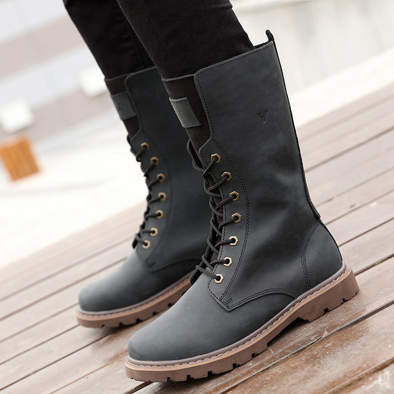 รองเท้าบูทหุ้มข้อหนังวัวแท้สำหรับผู้ชาย, รองเท้าทำงานสไตล์ย้อนยุคกันลื่นกันน้ำผูกเชือกสำหรับฤดูใบไม้ร่วงและฤดูหนาว