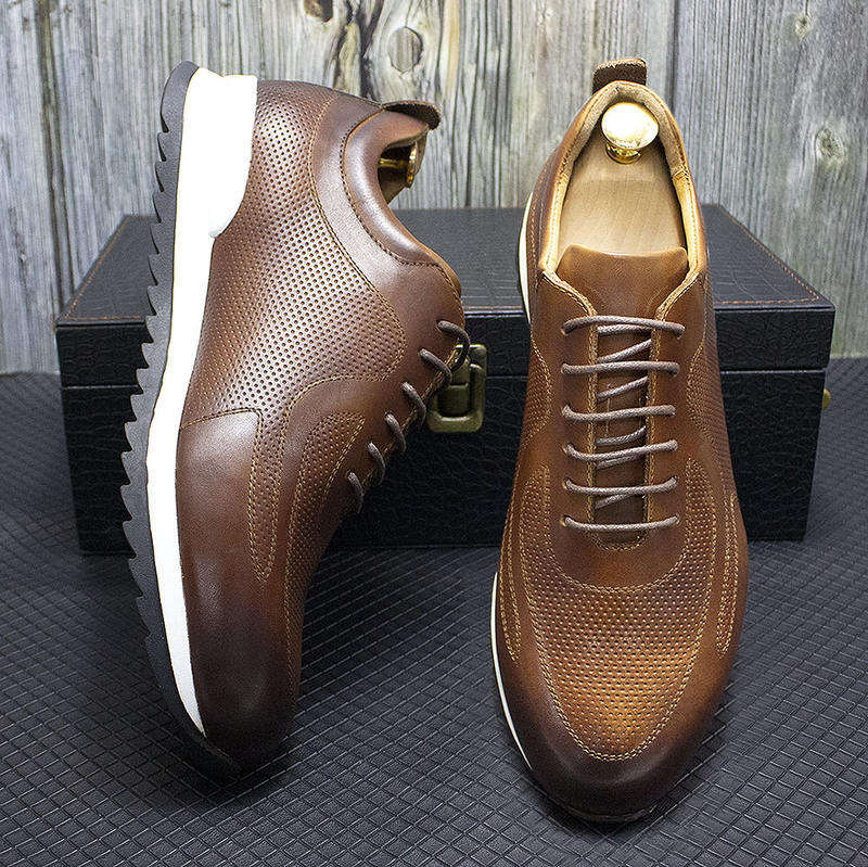 รองเท้าหนังแท้สำหรับผู้ชาย - รองเท้าลำลองแบบผูกเชือก ระบายอากาศได้ดี สวมใส่สบาย เหมาะสำหรับใส่ทำงาน วิ่ง และเดิน