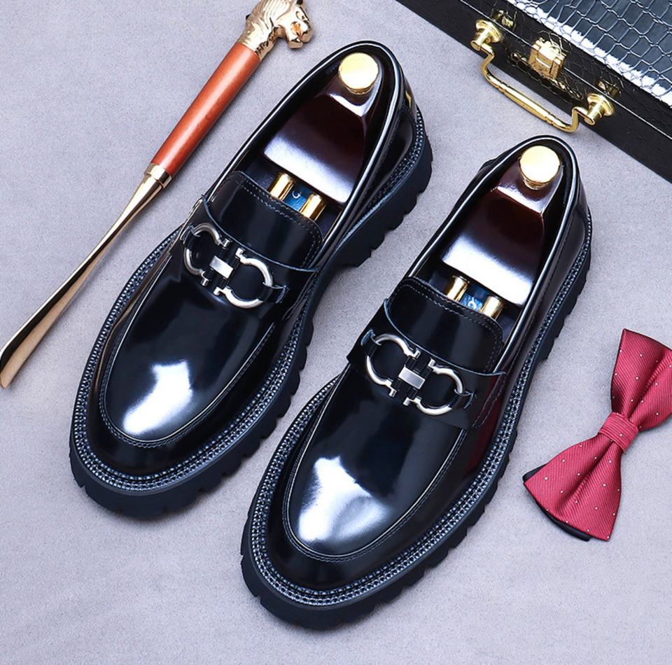 รองเท้าโลฟเฟอร์หนังแท้สำหรับผู้ชาย กันน้ำ กันลื่น น้ำหนักเบา ลายดอกไม้สีเขียวอมฟ้า เหมาะสำหรับใส่ทำงานหรือโอกาสทางการ แบบสวม ปิดนิ้วเท้า