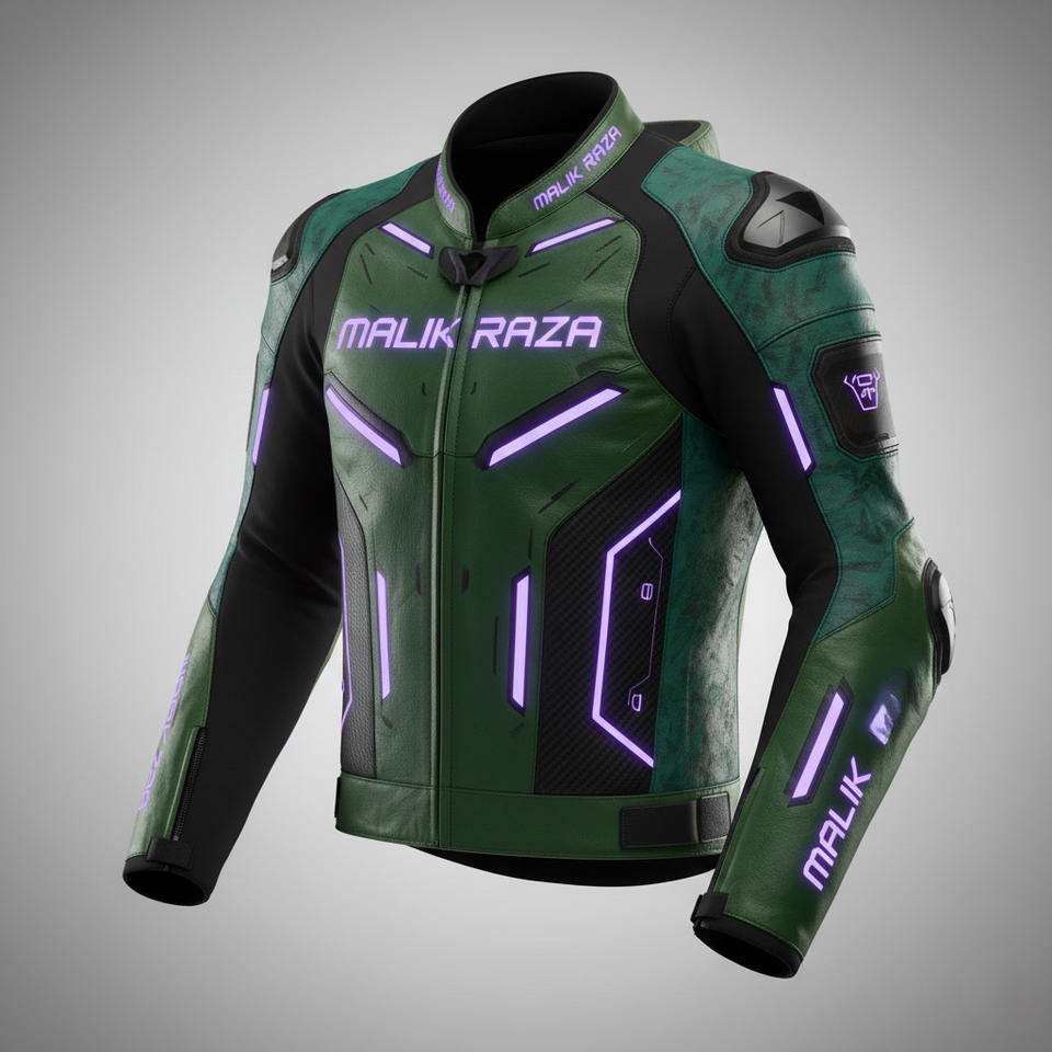 Genuine Leather Motorbike Jacket by MALIK RAZA | Reinforced Triple Stitching Safety | Professional Rider Protective Gear