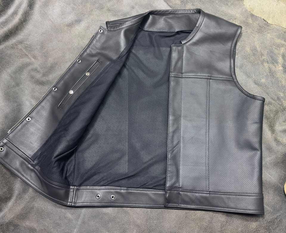 ชื่อผลิตภัณฑ์:เสื้อกั๊กหนังบุลายข้าวหลามตัดสำหรับนักบิด MC รุ่น Mens Reaper Club