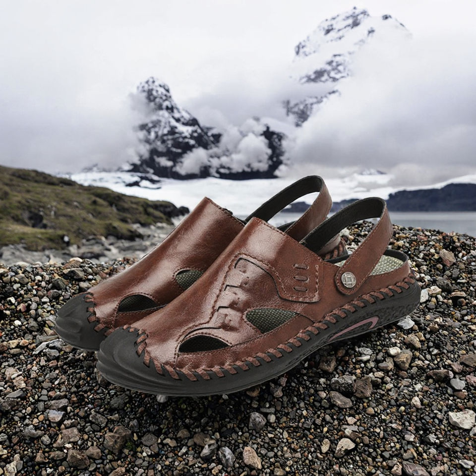 รองเท้าแตะหนังแท้แบบเย็บมือสำหรับผู้ชาย น้ำหนักเบา กันลื่น ไซส์ 38-46 ใช้ได้ทุกฤดู (ฤดูร้อน/ฤดูใบไม้ผลิ/ฤดูหนาว)