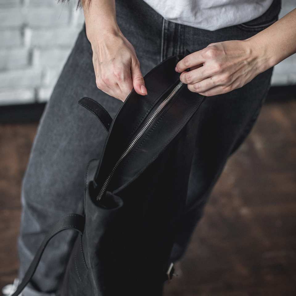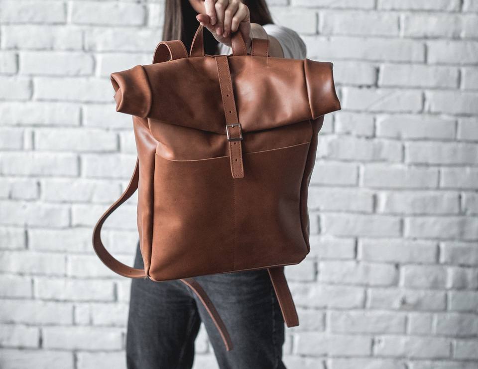 กระเป๋าเป้หนังแบบม้วนปิด