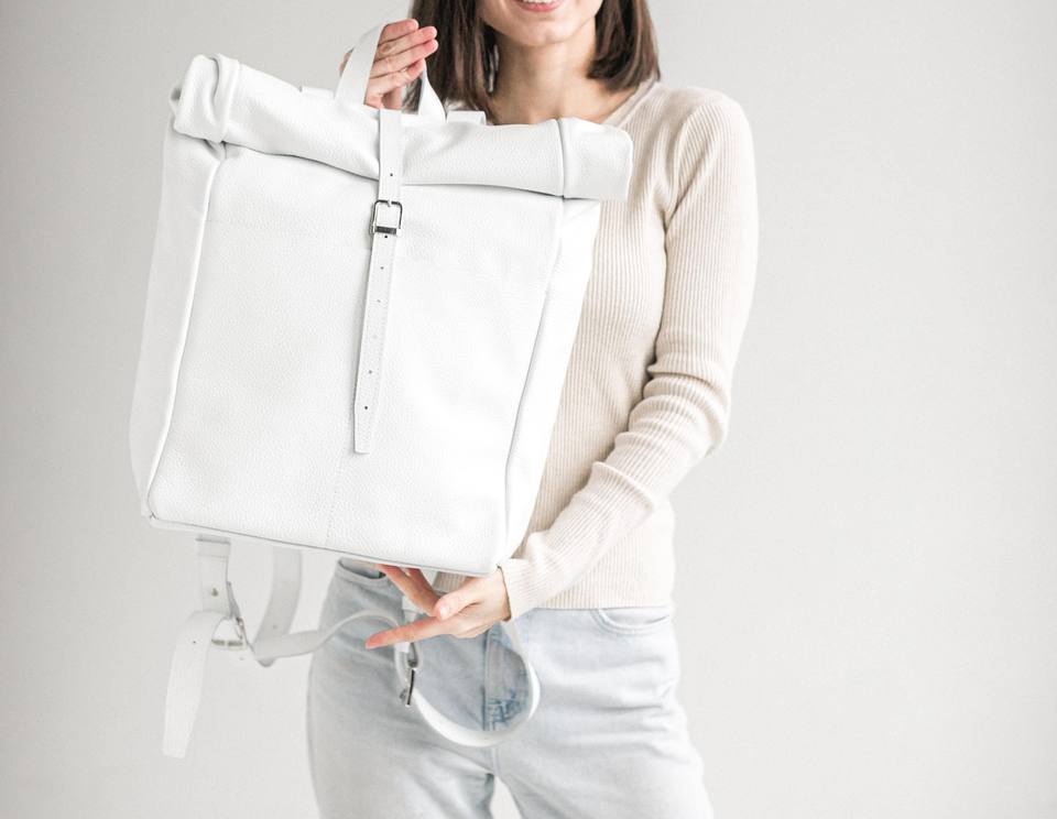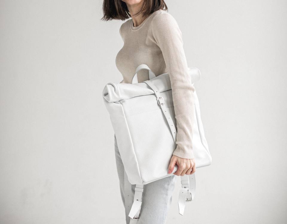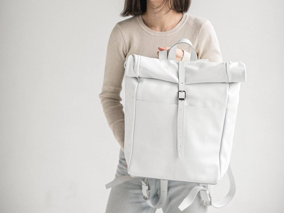 Leather Roll Top Backpack