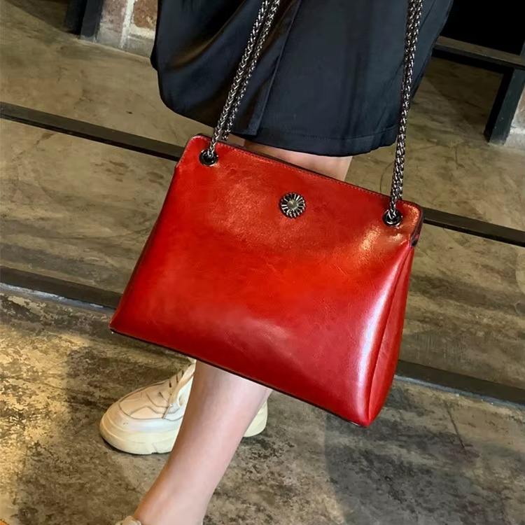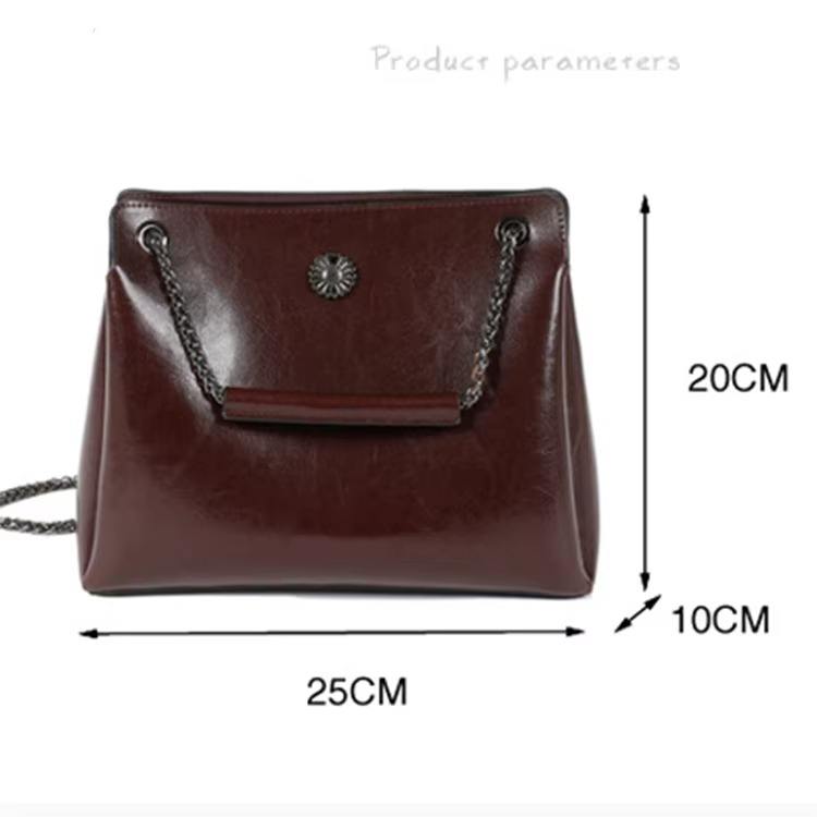 กระเป๋าสะพายไหล่หนังแท้สำหรับผู้หญิง ทนทาน ปิดด้วยซิป สายโซ่หรูหรา กระเป๋าสะพายข้างทันสมัย ผิวเงางาม