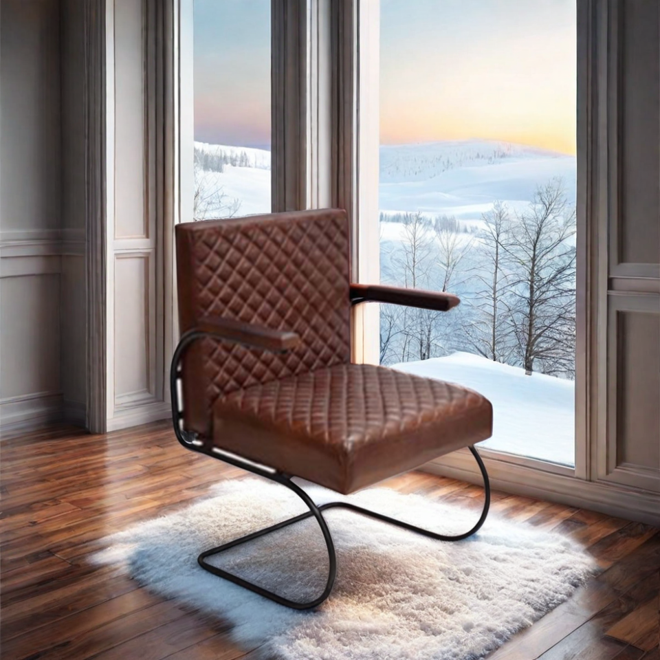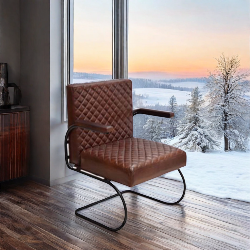 เก้าอี้โซฟาหนังแท้ฐานเหล็กแข็งแรงที่พักแขนเก้าอี้รับประทานอาหารสำหรับบ้านโรงแรมสำนักงานโรงพยาบาล