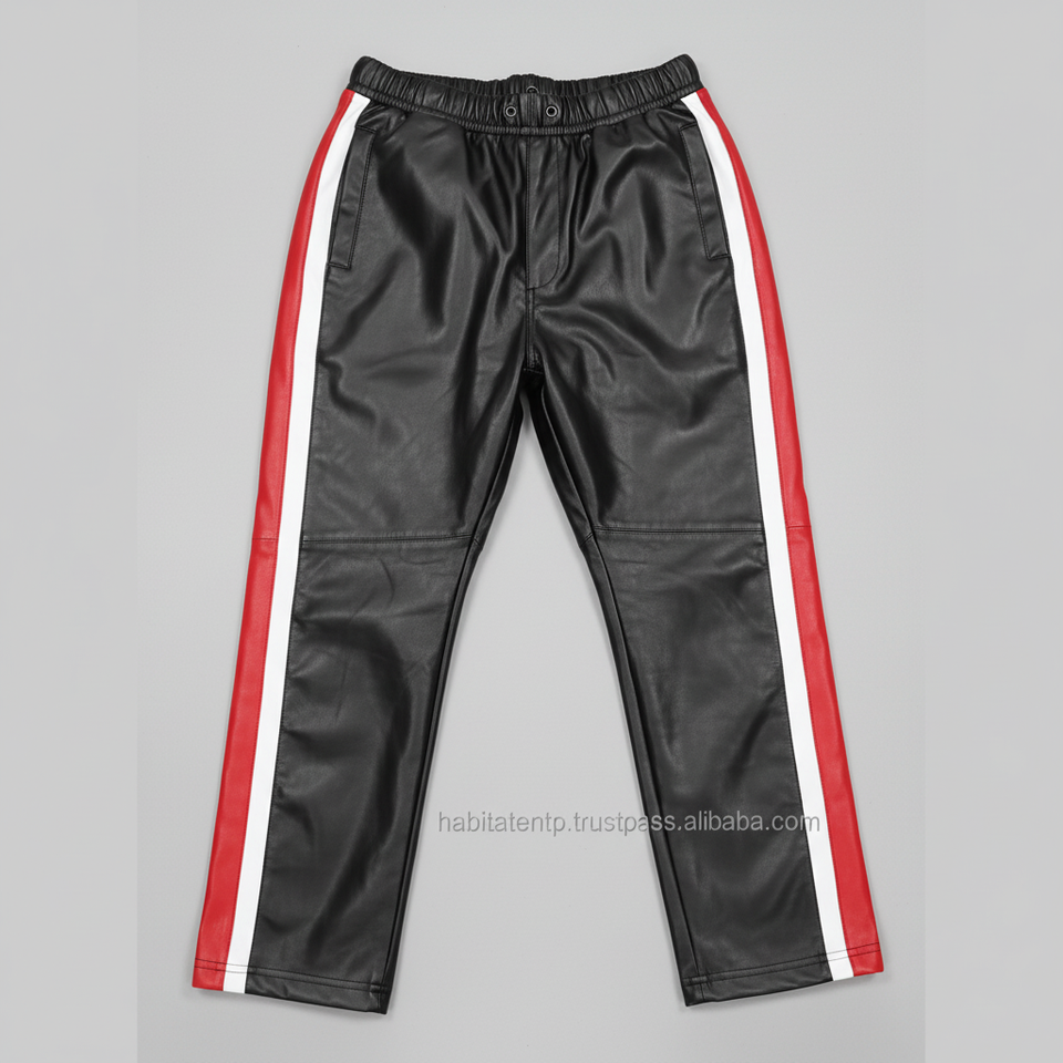 กางเกงวิ่งสำหรับผู้ชายลายทางหนังแท้