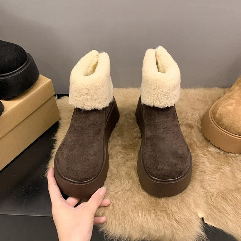 757kza21075หนังแท้ที่ทำจากขนสัตว์ความหนาวเย็นมีซิปรองเท้าบูทคลาสสิกใช้ได้ทุกวัน