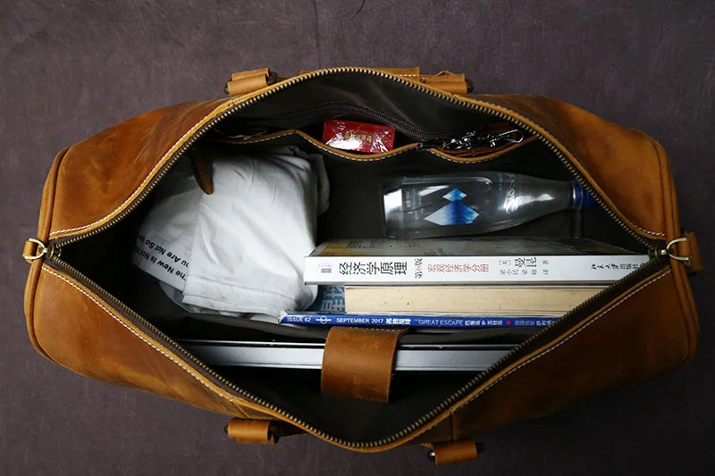 กระเป๋าเดินทางหนังแท้ความจุขนาดใหญ่สไตล์วินเทจพร้อมซิปปิดกันน้ำสำหรับกลางแจ้งทุกสัปดาห์