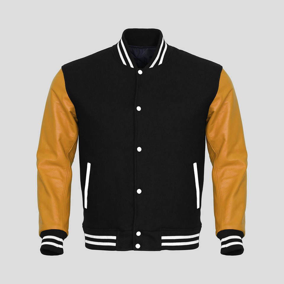 Genuine Leather Varsity Man Jacket with Baseball Sleeves College Inspired Coat from GLOVES City Sialkot Pakistan