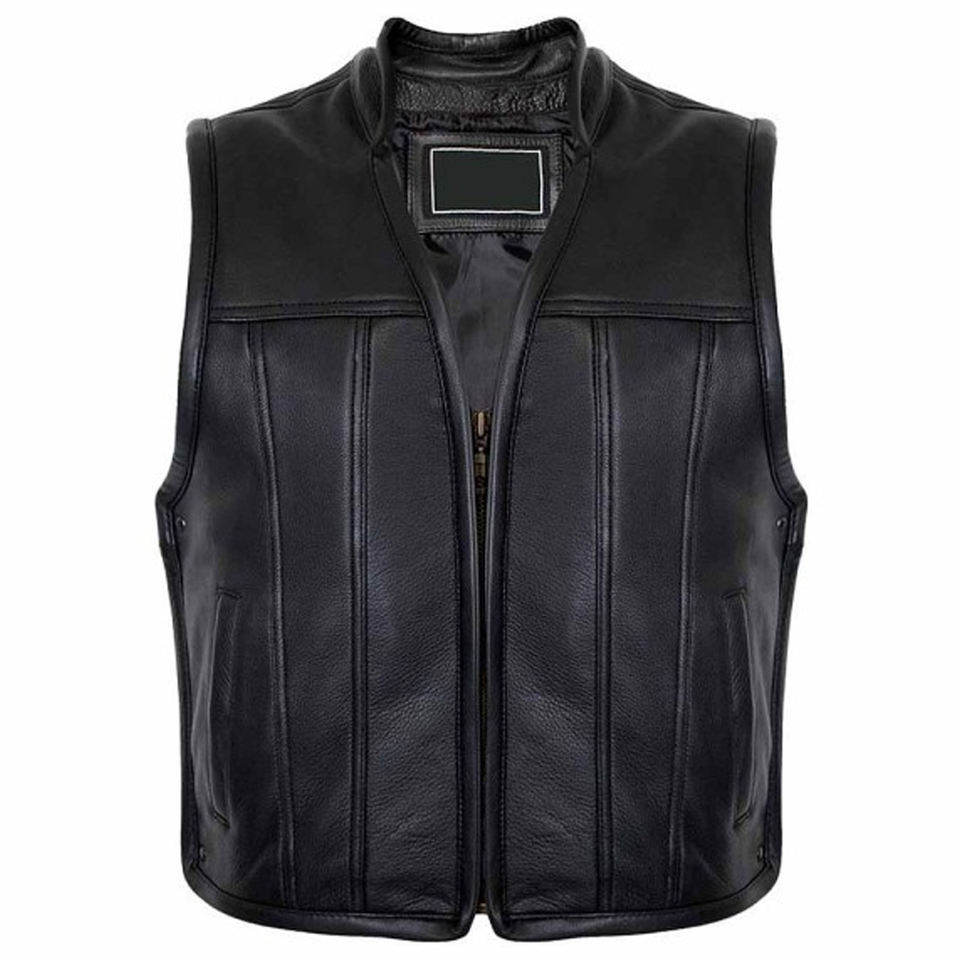 เสื้อกั๊กหนังแท้สำหรับผู้ชาย แบบไม่มีแขน สไตล์นักขี่มอเตอร์ไซค์ หนังวัว หนังแกะ รับทำโลโก้ตามสั่ง ขายส่งจากโรงงาน
