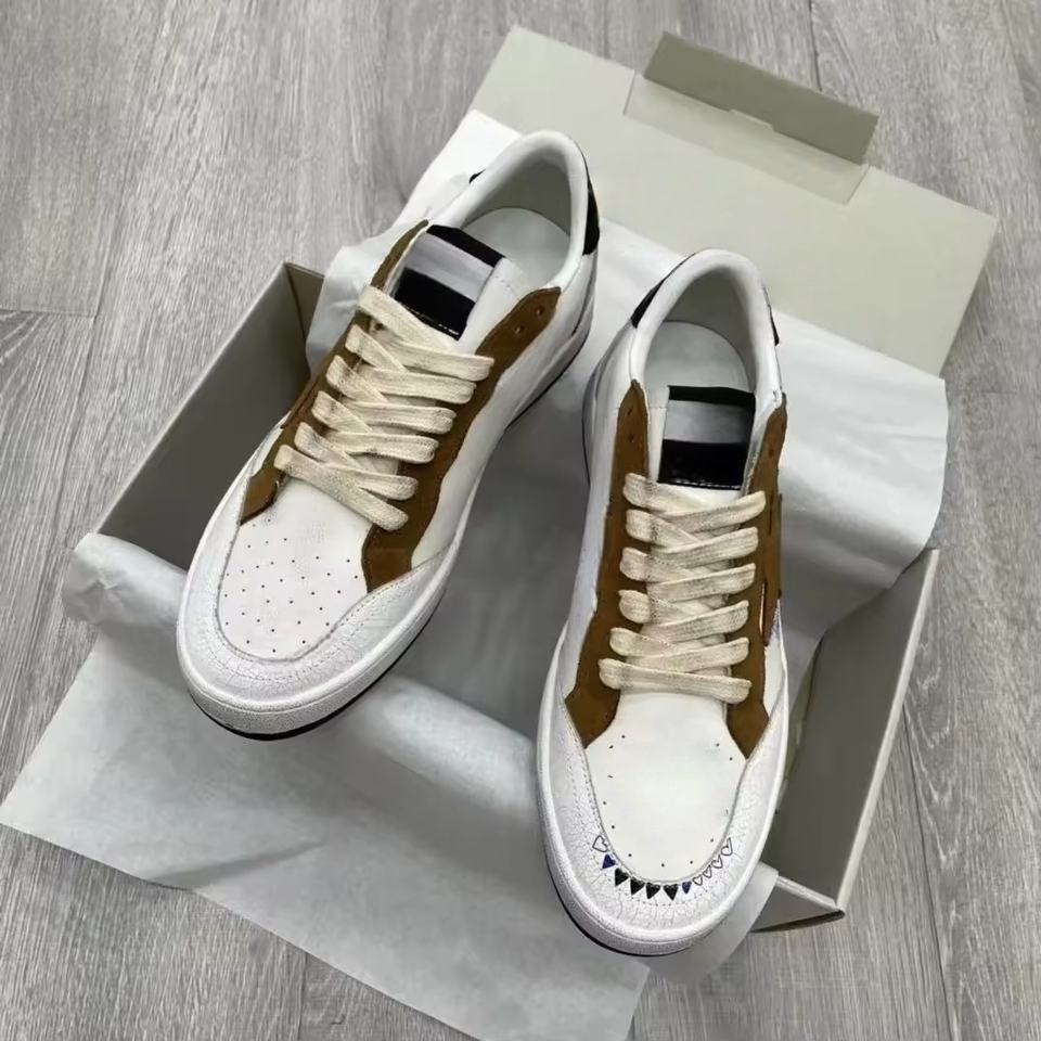 Genuine Leather White Goose Lace Sneakers Mesh Anti-Slip Waterproof Flexible Slip-On Walking Style Shoes Men Fashion Designer