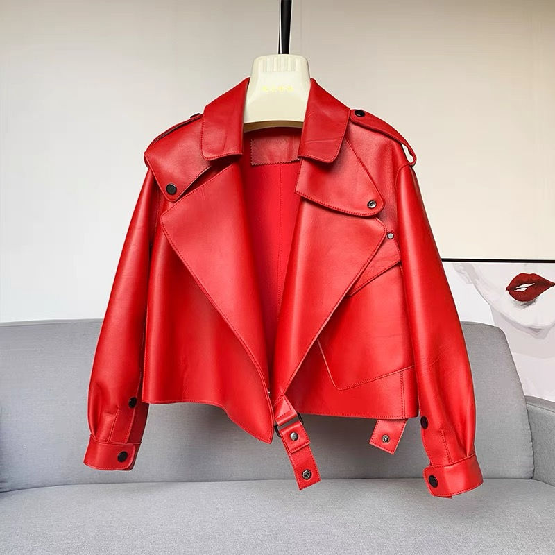 Keywords:Ladies Real Leather Moto Jacket